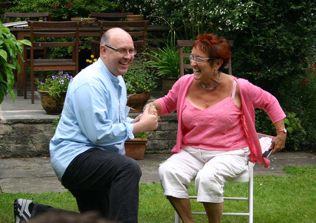 Today would have been Linda Chase’s birthday. She volunteered to run and organise courses for the Poetry School. She ran the first one Autumn 2004. She started Poets & Players the same year. I was there and at the amazing Garden Parties. Here is a photo of me at the 2006 one, selling donated poetry books to raise funds for bursaries. In the background is the wonderful Village Hall.