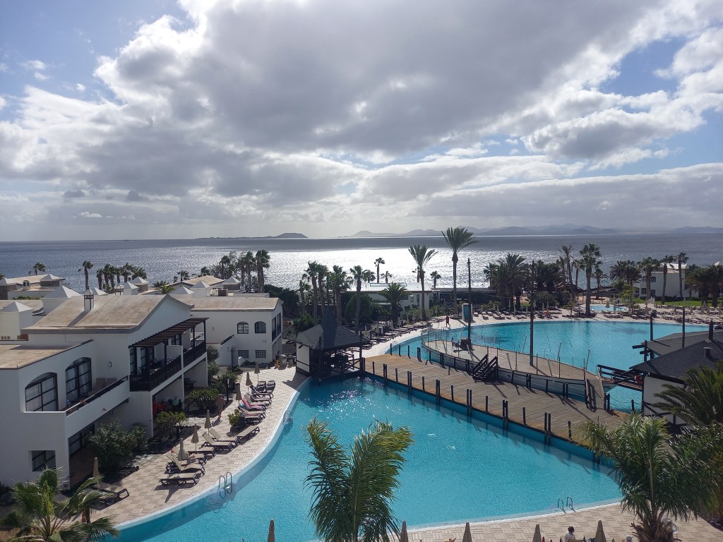 Most of January I was on Lanzarote. I was unwell, so I spent much of my time reading in the Piano Bar of the hotel. Here is a view from the balcony. In the distance is Fuerteventura.